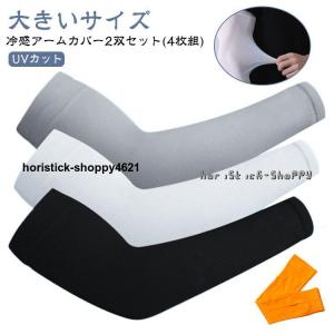 無地 メンズ レディース 大きいサイズ アームカバー UV 2双セット(4枚組) 接触冷感 アームカバー ゴルフ 運転 冷感アームカバー 自転車 腕カ
