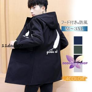 ウィンドブレーカー マウンテンパーカー ロングコート メンズ アウトドア アウター フード付き 防風 スリム 秋冬 通勤 通学 シンプル おしゃれ