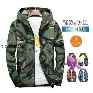 ウィンドブレーカー マウンテンパーカー メンズ アウトドア 薄手 軽め アウター フード付き 防風 トレーニングウェア 登山 透湿 迷彩 花柄