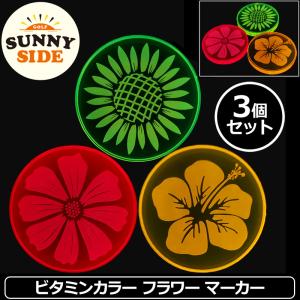 3個セット サニーサイドゴルフ ゴルフマーカー フラワーリース #001(ひまわり/コスモス/ハイビスカス) 蛍光 ビタミンカラー 40mm 日本製