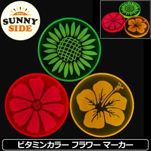 バラ売り サニーサイドゴルフ ゴルフマーカー フラワー #001(ひまわり/コスモス/ハイビスカス) 蛍光 ビタミンカラー 40mm 日本製 ネオンカラー