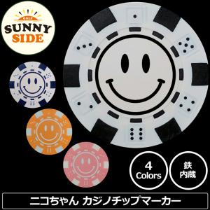 バラ売り サニーサイドゴルフ ゴルフマーカー ニコちゃん カジノチップ 40mm 5mm厚 日本製 全4色 メール便発送 SUNNY SIDE GOLF スマイル カジノチップマーカー