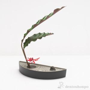 水盤 雫影 かたかご 消炭色 剣山付 ( 退職祝い 定年 花器 いけばな 生け花 おしゃれ おすすめ 高岡銅器 結婚 出産 内祝い 引き出物 金婚式 )