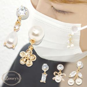 マスク ピアス マスクピアス レディース 2点 セット パール キュービックジルコニア CZ リボン りぼん 花 フラワー ティアドロップ 雫 チェリー さくらんぼ ステ