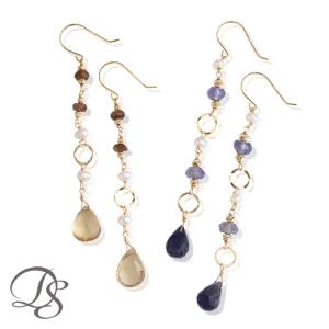 18金 ピアス k18 18金ピアス 18k 天然石 ピアス アイオライト シャンパンクオーツ レディース ゴールド 揺れる