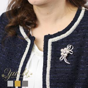 ブローチ (br53) リボン 卒業式 入学式 パール フォーマル コサージュ ラインストーン セレモニー アクセサリー おしゃれ 母の日
