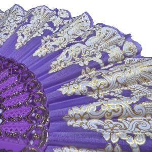 ゴージャス 柄 プリント 扇子 レース地(ラベンダー×ホワイト&ゴールド)アバニコ ダンス バレエ キトリ レッスン FA-005-LV