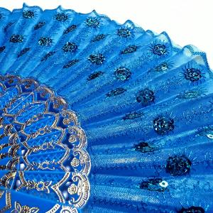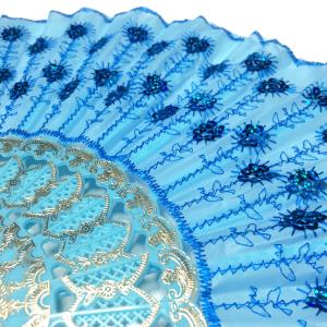 スパンコールと刺繍のゴージャスな扇子 レース地(青地×ブルー)アバニコ ダンス バレエ キトリ レッスン FA-018-BL