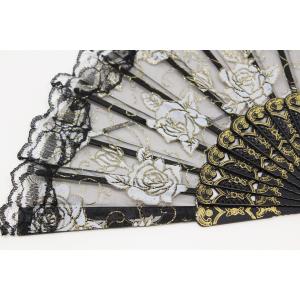 弁天屋本舗 全6色 練習用 ラメ入り 薔薇 レース 扇子 アバニコ バレエ ダンス リトモス キトリ スペイン 踊り レッスン 舞踊 (白)