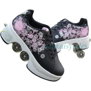 ローラーシューズ スニーカー 子供 2輪 led 7色照明 ローラーシューズ子供用 ローラースケート かかとボタン ヒーリーズ 23cm 男の子 女の子 USB充電式