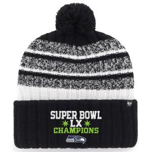 NFL シーホークス ニットキャップ 第60回スーパーボウル優勝記念 Tavern Cuffed Knit Hat with Pom 47Brand ブラック