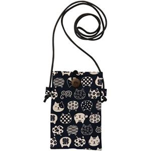 京佑(Kyoyu) 日本製 スマホ 携帯 ポシェット ポーチ ミニ ショルダー 斜めがけ にゃんこもん 猫 紺 11.5×17cm