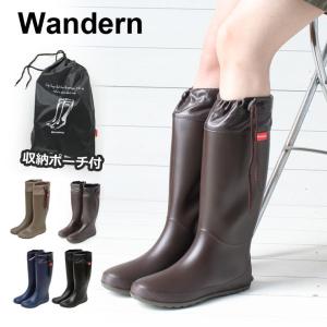 レインブーツ レディース 長靴 Wandern フォールディングレインブーツ / レインシューズ レディース 完全防水 通勤 通学 シンプル