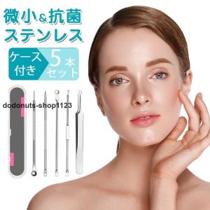 ニキビ 角栓 取りとり 圧出 コメド 除去 精密 ピンセット 抗菌 ステンレス 5本セット ケース付き