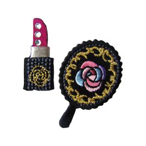23389 口紅・手鏡 ワッペン2個付き オトナかわいいシリーズ シールアイロン両用タイプ