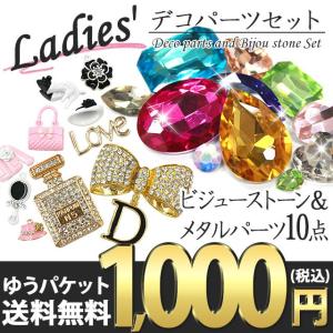 【メタルデコパーツ10点&ビジューガラスストーンセット】【レディース/女性向け】 福袋 香水 パフューム りぼん ミラー 鏡 ヒール カメリア 5番 D ビジュー 立