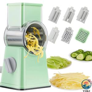 野菜スライサー 野菜カッター 手動 手回し式 大口径 多機能 1台6役 輪切り/細切り/千切り/粗挽き/波型切り/角切り 野菜 果物 大根/ジャガイモ/ナッツなど用 吸盤