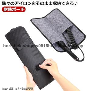 ヘアアイロンケース ヘアアイロン 収納 ポーチ 耐熱 ヘアアイロンポーチ 熱いままOK ダブルポケット コード収納ポケット付き コテ ヘアアイロンホル