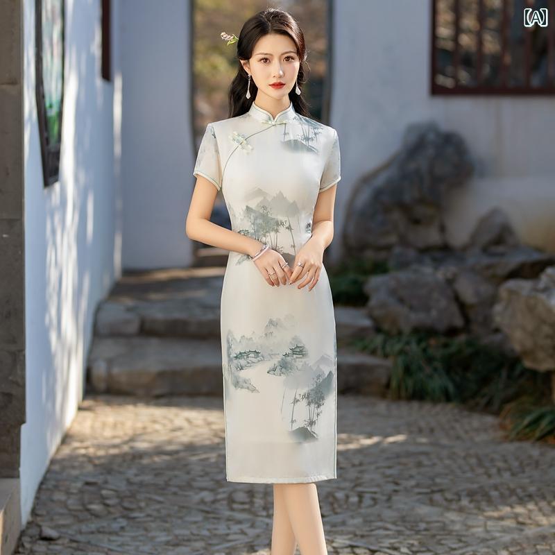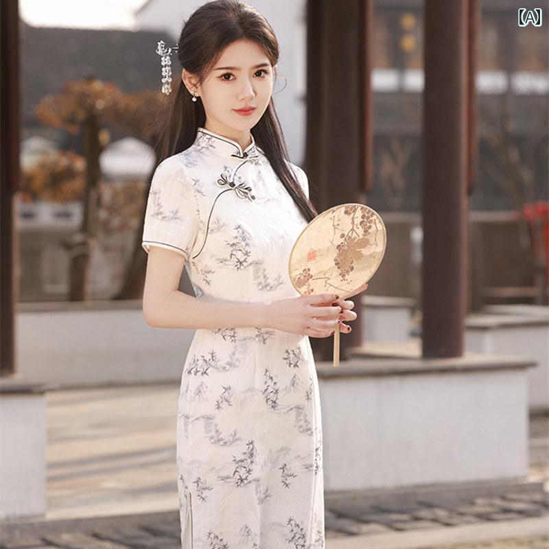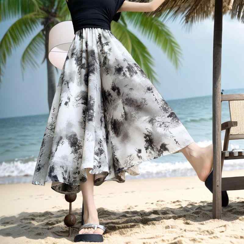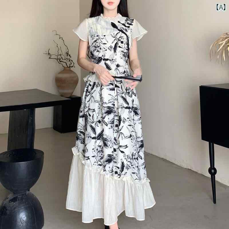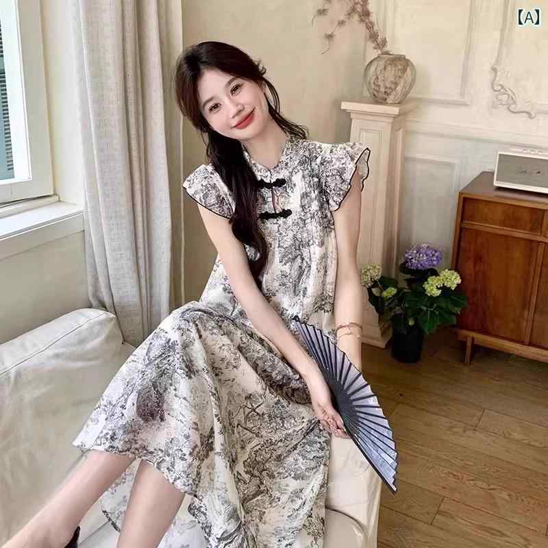 新 チャイナ風 夏 レトロ バックル 飛行 袖 海辺 休暇 スカート
