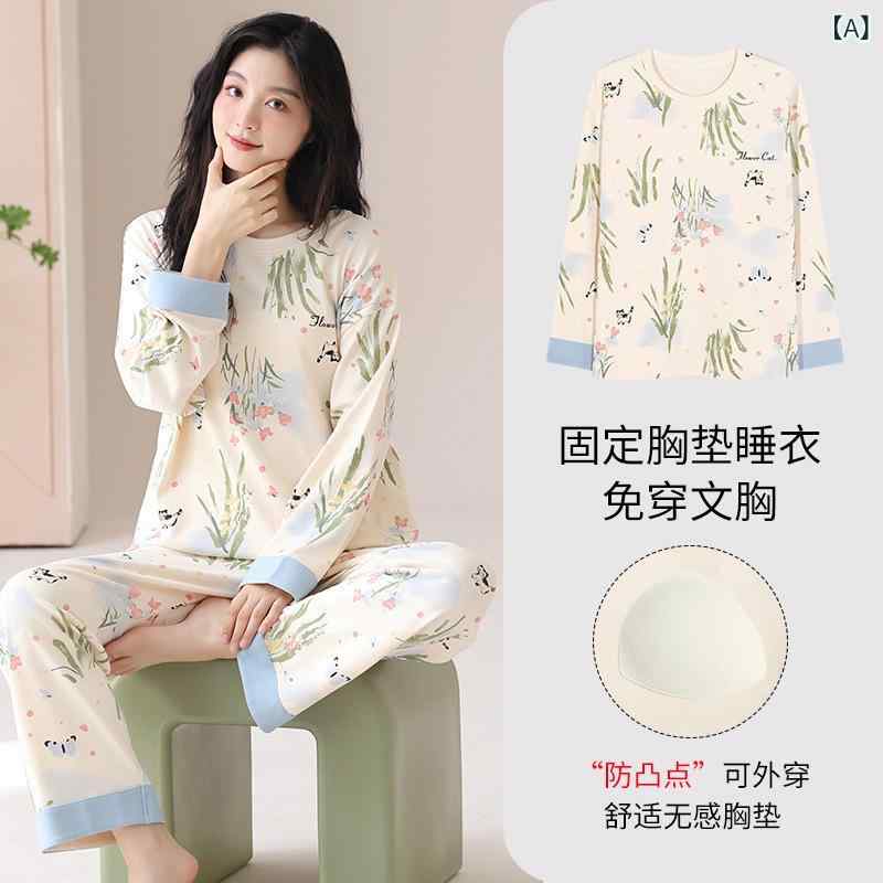 パジャマ レディース 全棉 春秋 長袖 かわいい プルオーバー 薄手 ルームウェア 上下セット 綿100% 部屋着