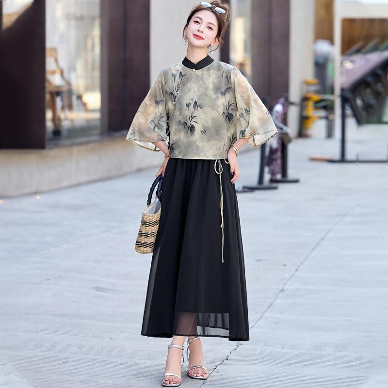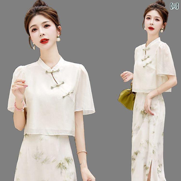 チャイナ風 レディース ファッション セットアップ おしゃれ 上品 トップス スカート 夏 2点 セット