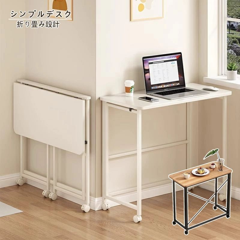 お買い物マラソン【P5倍】デスク テーブル 机 ワークデスク パソコンラック 学習机 書斎デスク PCデスク 勉強机 オフィスデスク アジャスター付き 折りたたみ式収納 360°回転し