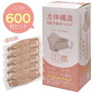 【40箱 1200枚セット】立体構造 4層 不織布 マスク 個包装 ピンクベージュ (10)