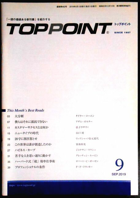 【中古】TOPPOINT(トップポイント) 2019年9月号【コンデション=非常に良い】
