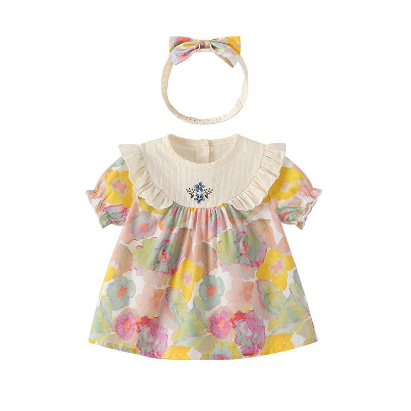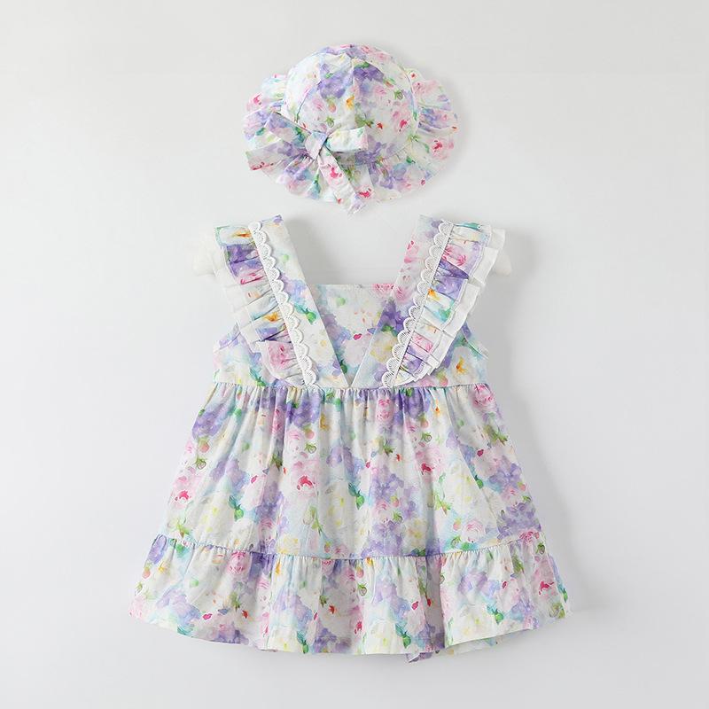 風 花柄 フリルスカート プリンセスドレス ナチュラル おしゃれ かわいい 誕生日 春夏 80 90 100cm