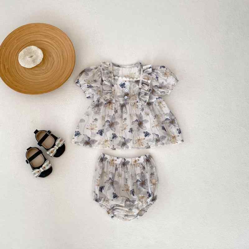 風 花柄 半袖 ショートパンツ 2点セット 韓国風 おしゃれ ルームウェア 部屋着 お出かけ 通園 肌に優しい 春夏 セットアップ