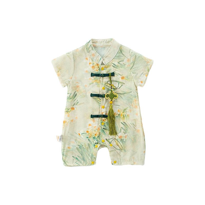 風 グリーン かわいい 春夏 薄手 通気性抜群 お出かけ 発表会 プリンセス レトロ キッズ服