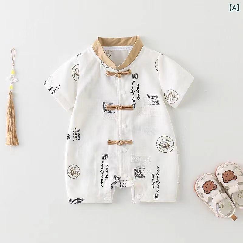 風 半袖 薄手 綿混素材 カバーオール 春夏 涼しい 通気性 おしゃれ カジュアル お出かけ着 白 ホワイト 乳幼児服