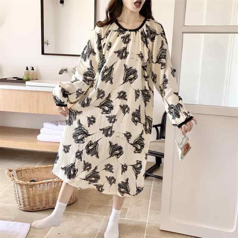 柄 長袖 春秋 部屋着 ルームウェア 膝丈 ゆったり ポリエステル かわいい 接触冷感