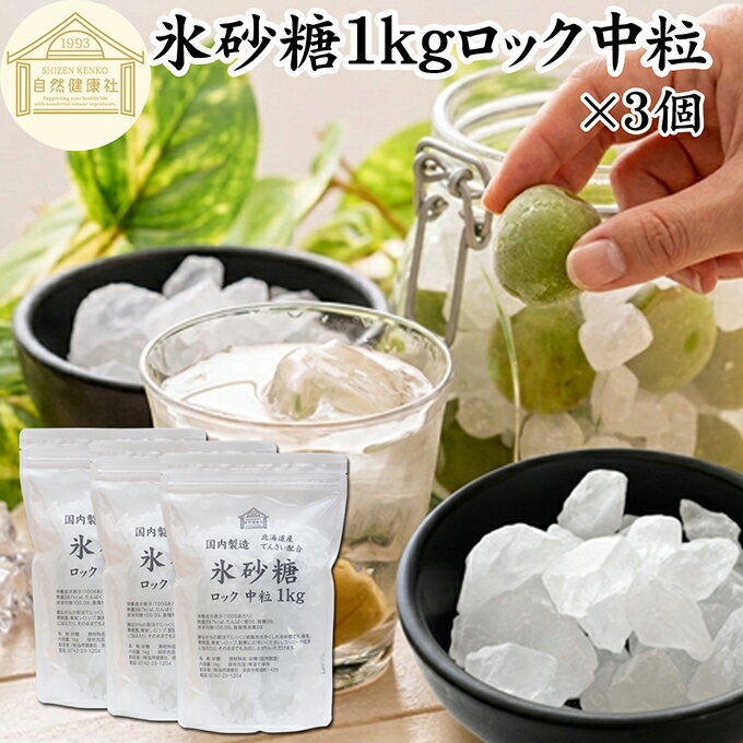 氷砂糖 1kg×3個 ロック 大粒 梅酒用 果実酒用 北海道産 てんさい糖 使用 業務用 保存料 無添加 国産 甜菜 てん菜 シュガー 砂糖 さとうきび サトウキビ 使用 梅酒 果実酒 まとめ買い 大容量 家庭用 自家製 果実 シロップ 梅 製菓 材料 レモネード ジャム 甘味料 ぜんざい