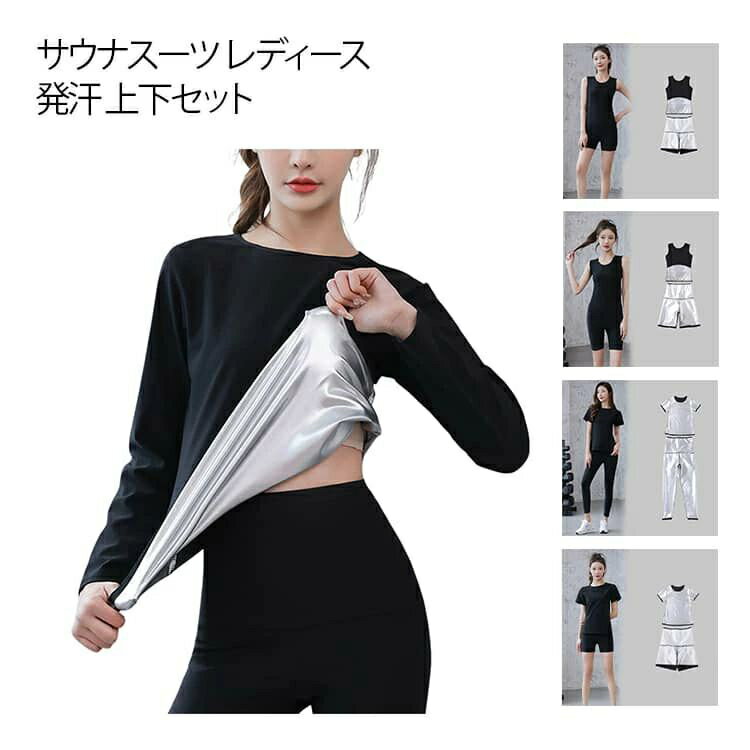 ランニング 超発汗 レディース サウナスーツ スポーツウェア 半袖 上下セット 三分丈 長袖 五分丈パンツ ロングパンツ ヒートラップ サウナスーツ 筋トレ ダイエット 着るサウナ ストレッチ