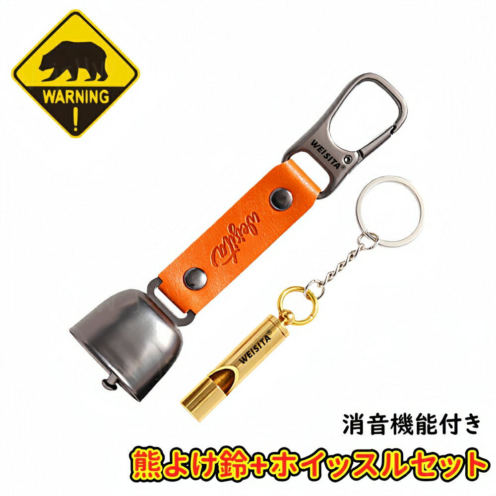 熊よけベル 熊鈴 ホイッスル付き クマよけベル 消音機能付き マグネット消音 真鍮 カラビナロック式 PUレザー キーホルダー ベアベル ペットベル 熊よけ クマ対策 登山 くま 心地いい音色 熊避け アウトドア 登山 ハイキング キャンプ 野外 軽量
