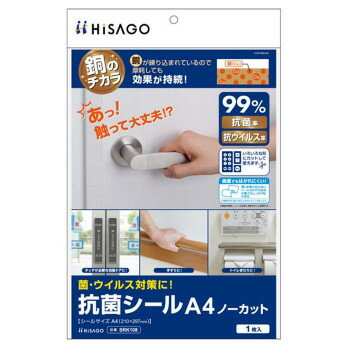 ヒサゴ 抗菌シール A4 ノーカット SRK108【お寄せ品、返品キャンセル不可。欠品終売時連絡あり】