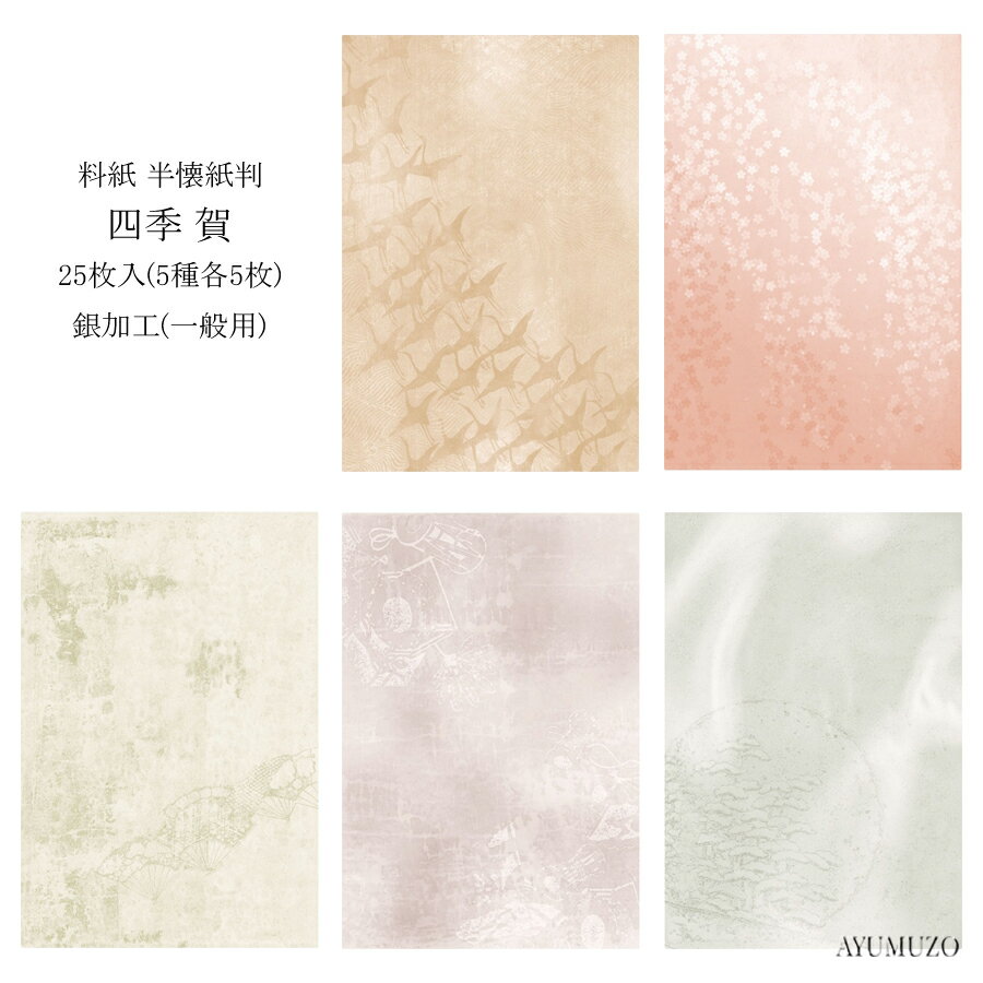 新料紙 守礼 中字 5色セット 半懐紙 50枚 AG20-2 淡い色合いが美しい