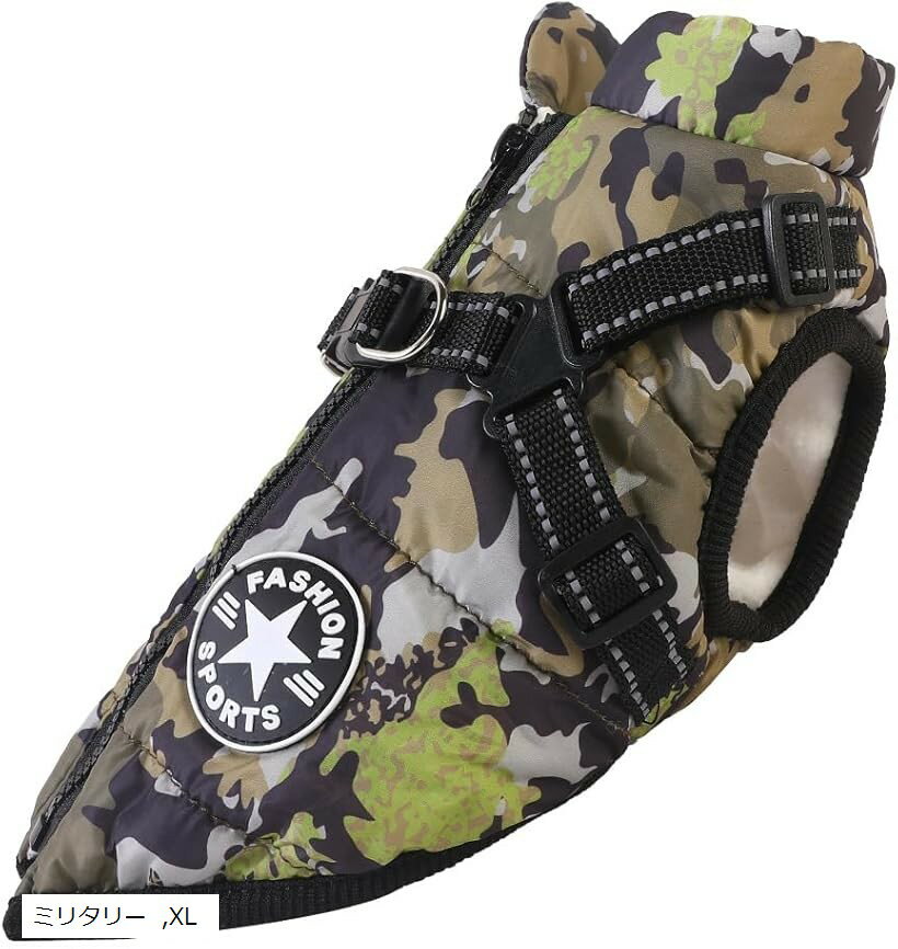 犬服 ベスト 綿コート 防水ジャケット 防寒 暖かい 軽量 着脱簡単 秋冬 (ミリタリー, XL)