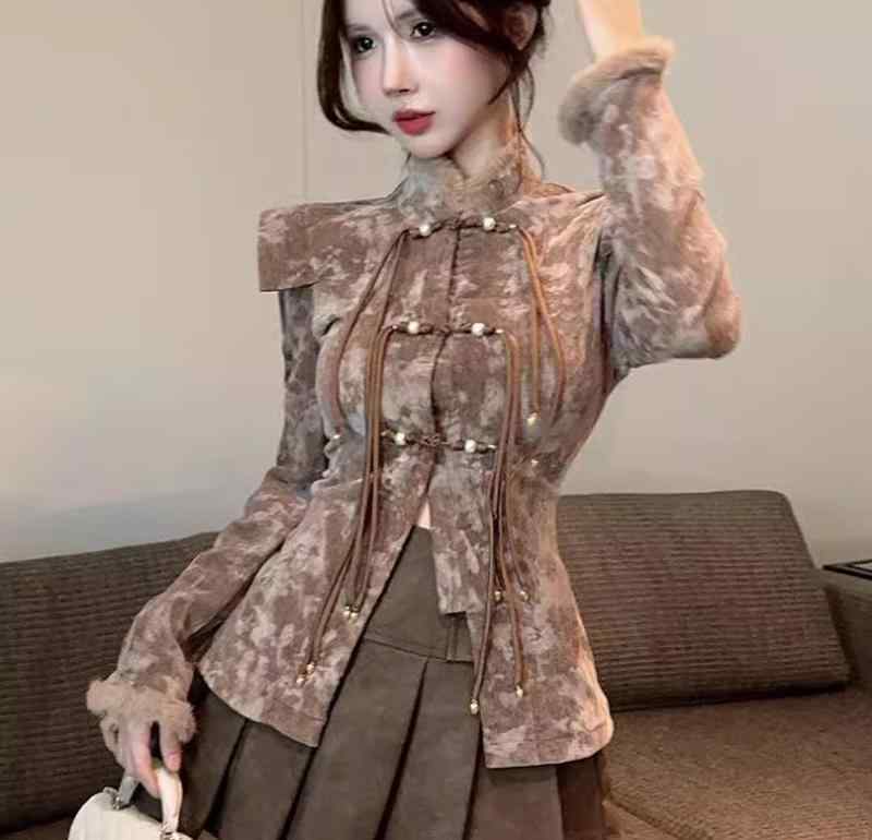 柄 長袖 ゆったり レトロ オリエンタル アート柄 トップス 春夏 普段使い カジュアル 快適