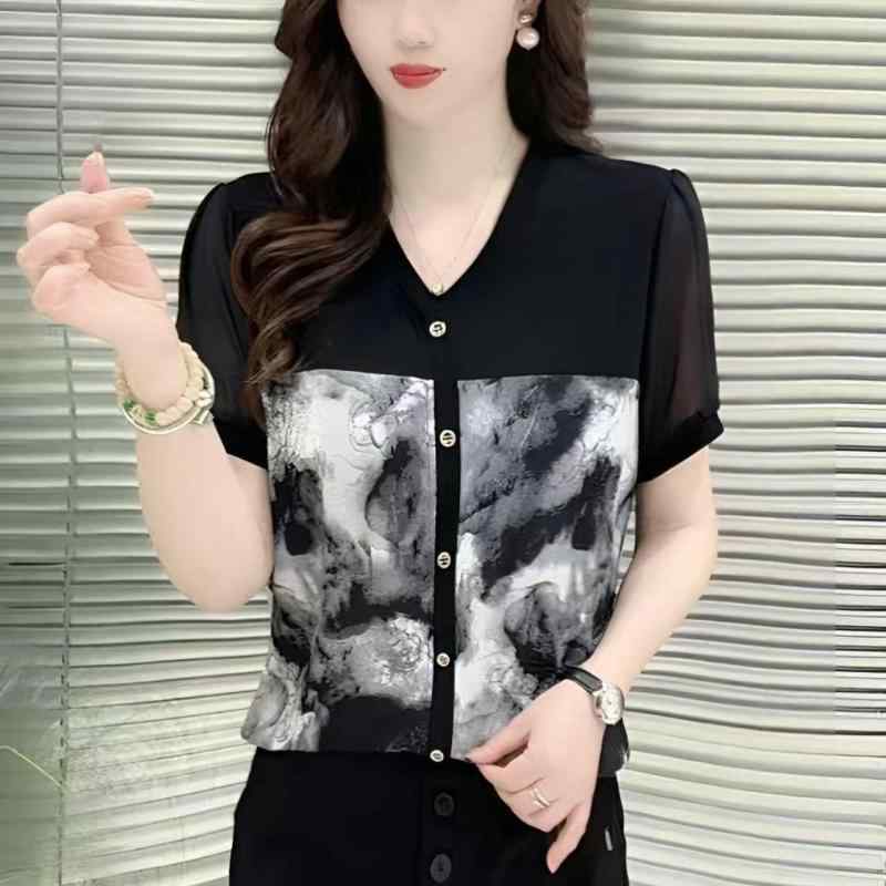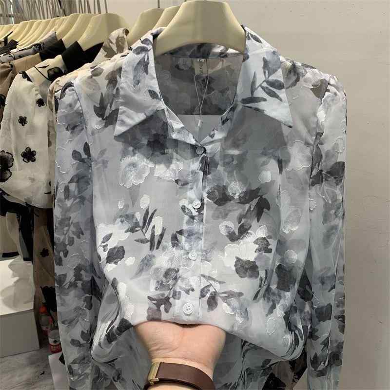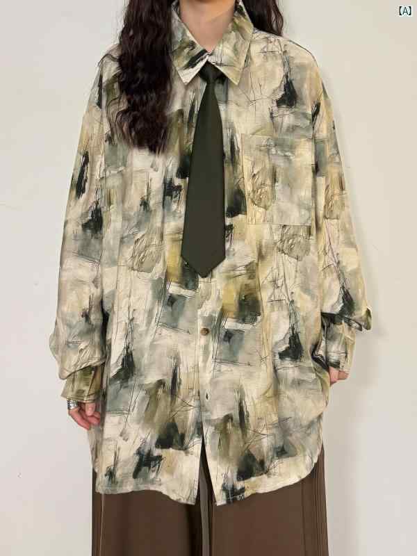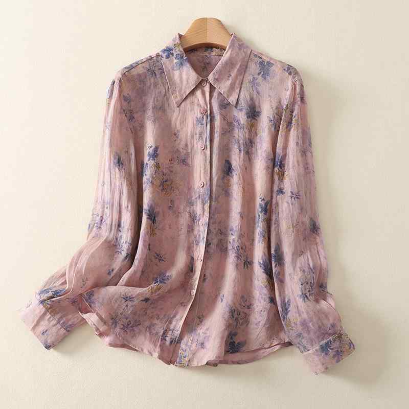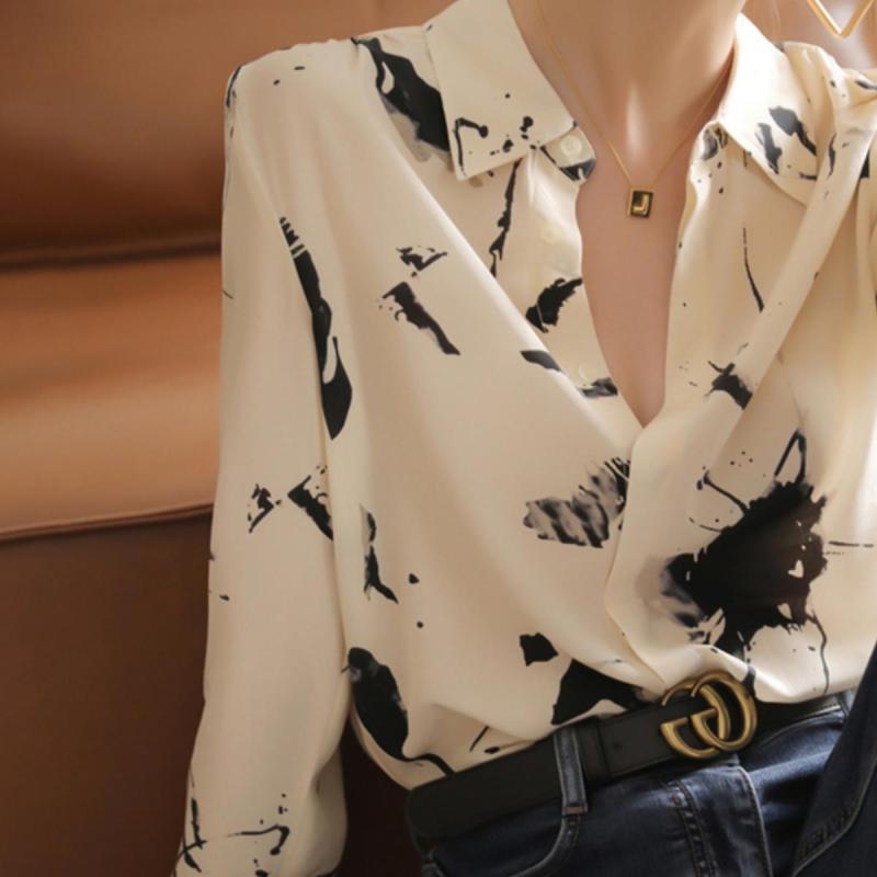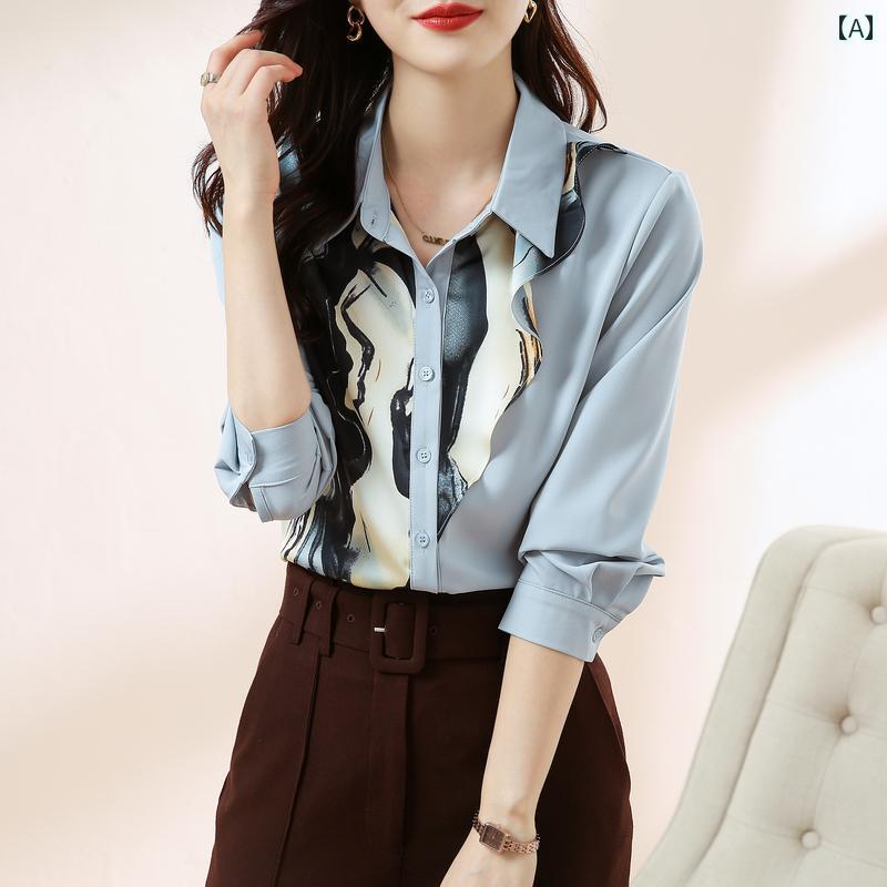 プリント 長袖 シフォン シャツ レディース ファッション 薄手 トップス エレガント カジュアル アート