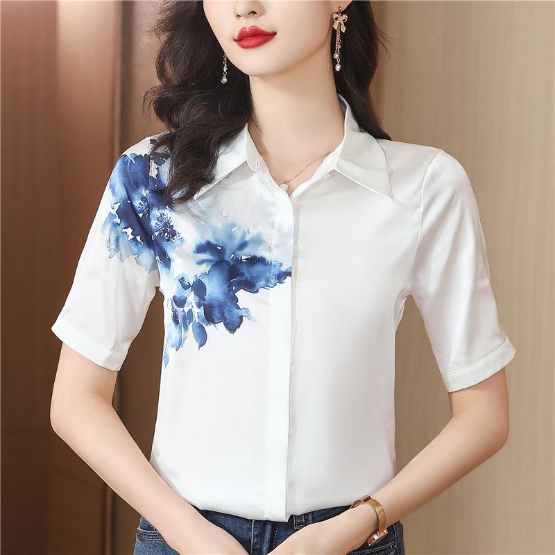 ブラウス レディース シルク 高級感 ポロ襟 半袖