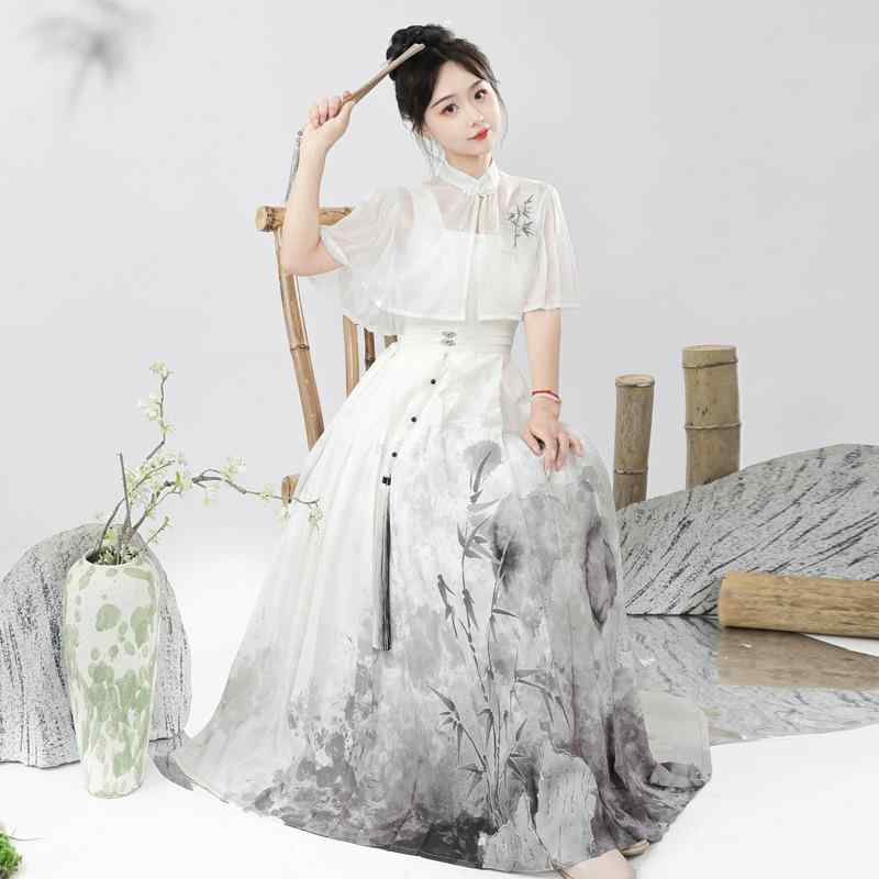 風 漢服スタイル 改良チャイナシャツ 馬面裙 プリーツスカート ポリエステル素材 明朝風 カジュアルスタイル お出かけ イベント
