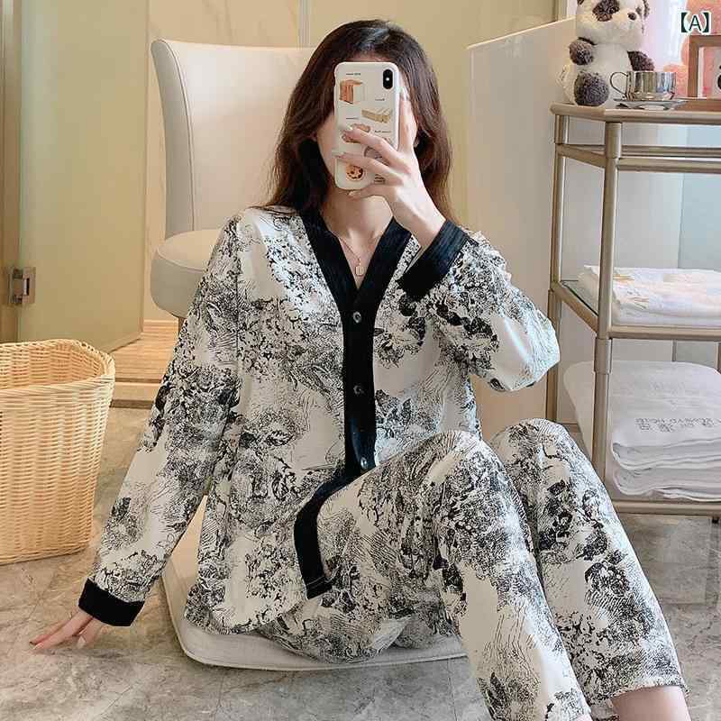 プリント カーディガン風 上下セット ルームウェア 部屋着 寝間着 再生繊維 薄手 伸縮性 通気性
