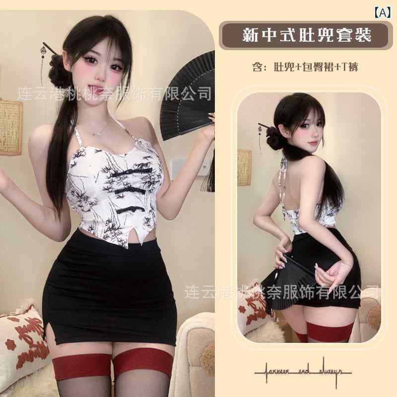 チャイナドレス レディース セクシー ランジェリー ビスチェ スリップ 紐 Tバック 3点セット ポリエステル レトロ