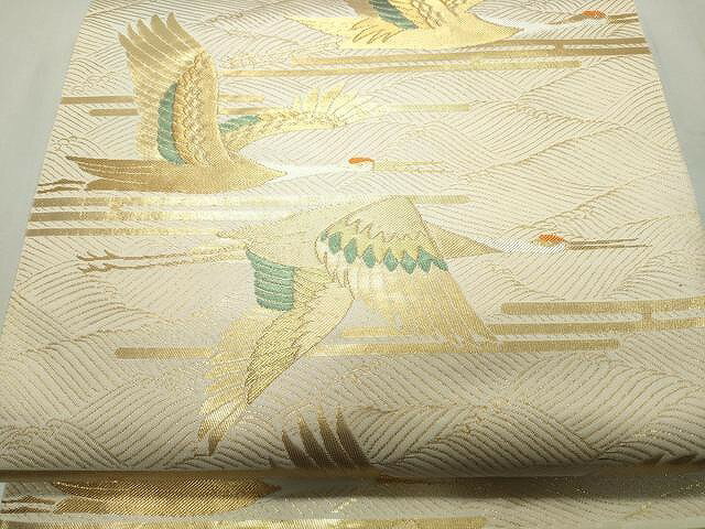 【レンタル】帯 単品 レンタル 帯単品レンタル「B1107 訪問着用帯 クリーム 霞取りに吉祥文様 クリーム系」 正絹 訪問着 帯 入学式 卒業式 結婚式 卒園式 入園式 お宮参り 帯単品 帯だけ 帯のみ