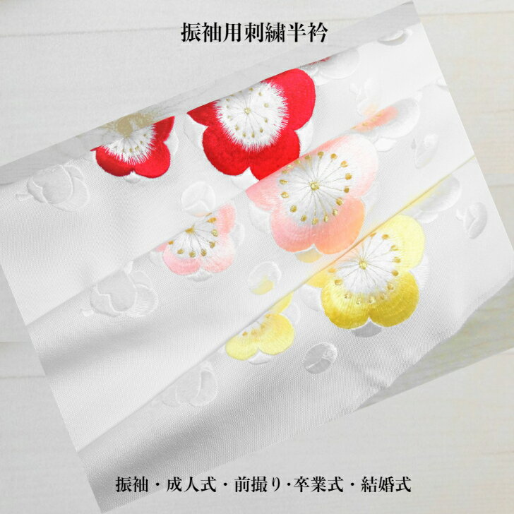 半衿 振袖 成人式 訪問着 刺繍 白地 金糸 礼装用 黒留袖 色留袖 オフホワイト クリーム色 花 桜 観世水 彩小径 刺繍半衿 puffy おしゃれ 着用 和装 着物 結婚式 No.10-6098