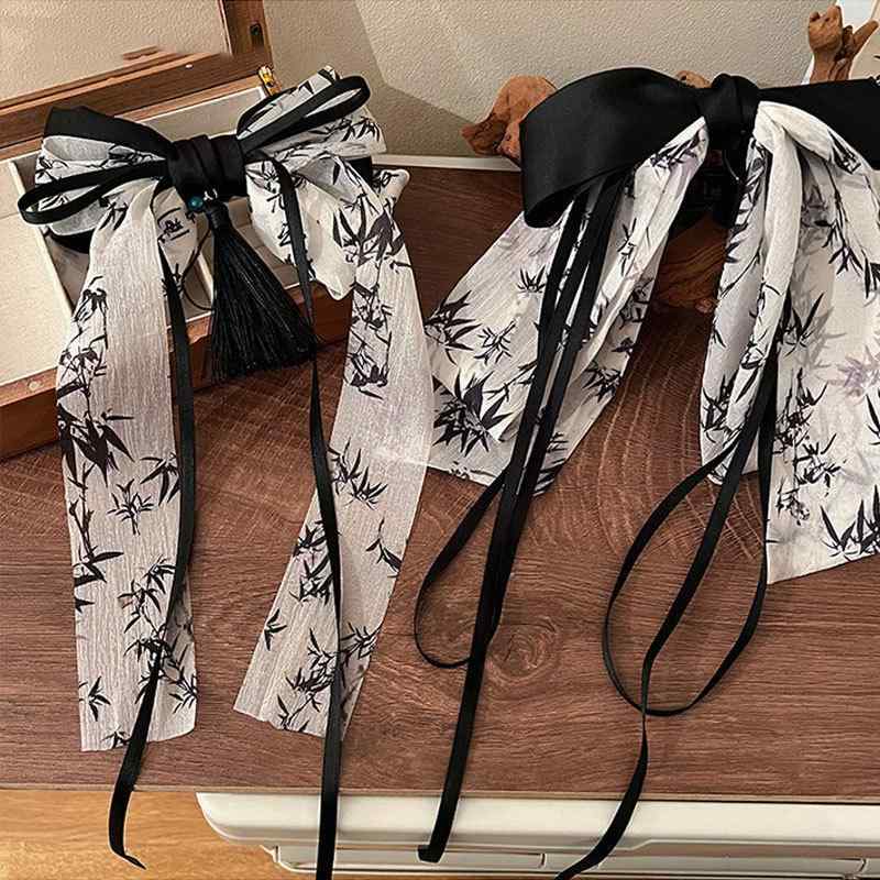 漢字 網紗 蝶結び 蓮花 タッセル 古風 清雅 樹脂製 春夏 黒 白 爽やか かわいい ヘアアクセサリー 髪留め 花モチーフ 軽量 女性用 普段使い