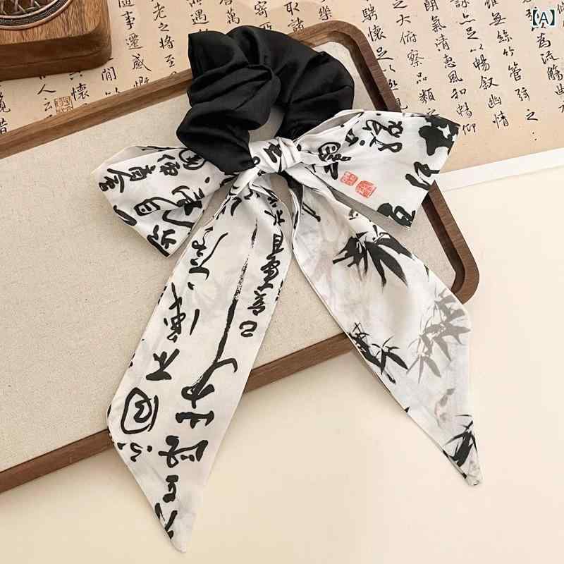 蝶結び シュシュ リボン ヘアゴム ヘアバンド 高弾力 文芸復古 レッド メープル 竹