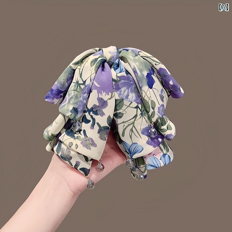 風プリント バンスクリップ ポニーテールクリップ 髪留め 高級感 エレガント レトロ クラシック 布製 ハンドメイド 髪飾り